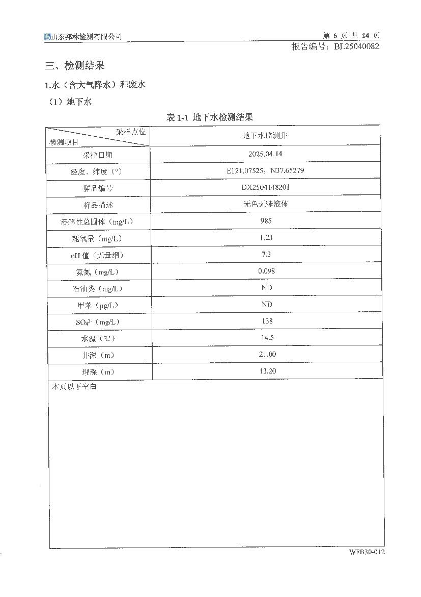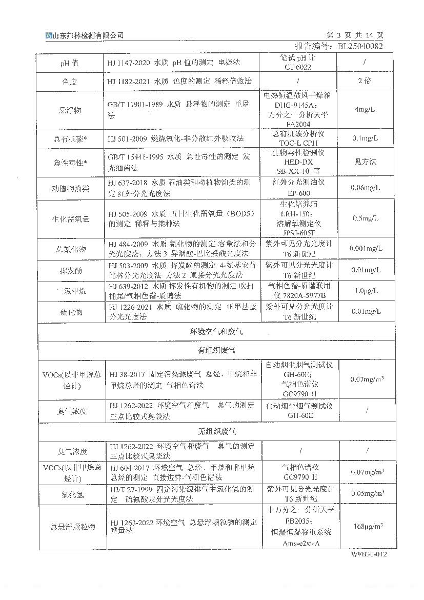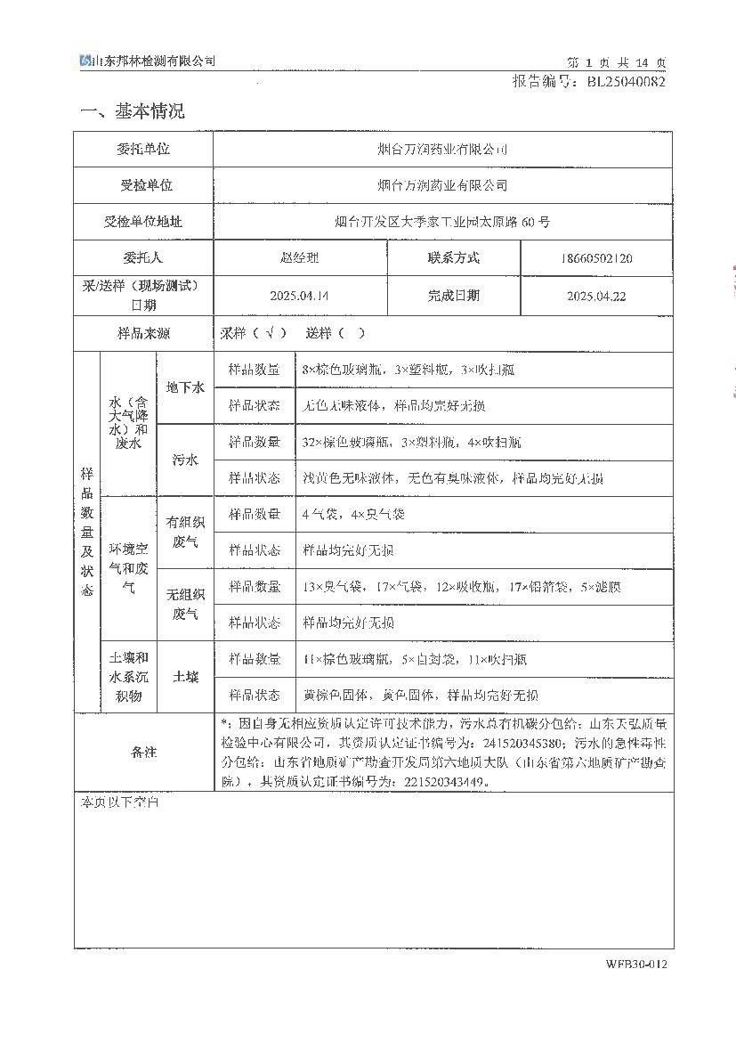 萬潤藥業(yè)環(huán)境檢測報告公示